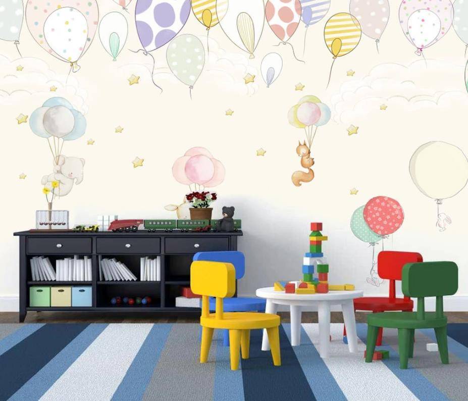 Бесшовные обои на стену: Воздушные шарики и милые животные. Артикул: 15-297