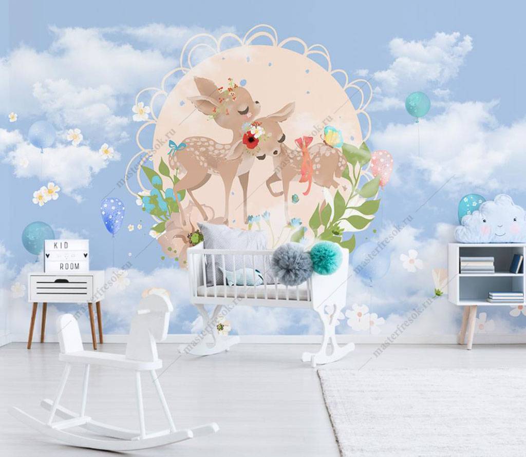 Бесшовные обои на стену: Оленята в облаках. Артикул: 15-985
