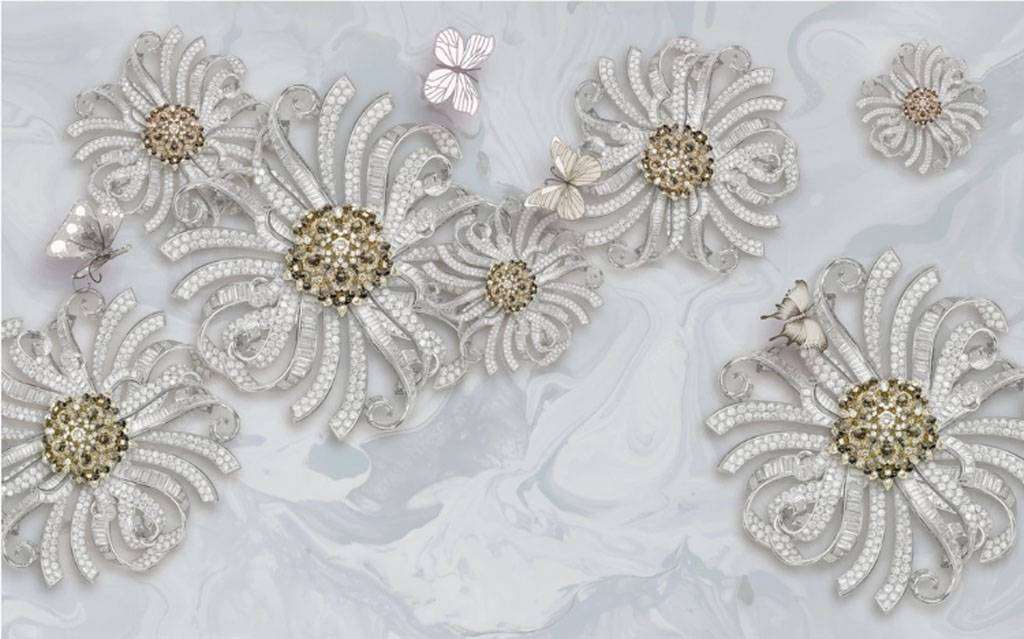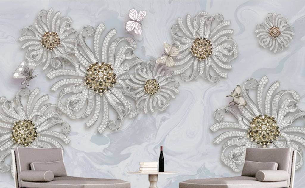 Бесшовные обои на стену: Цветы из страз. Артикул: 15-764