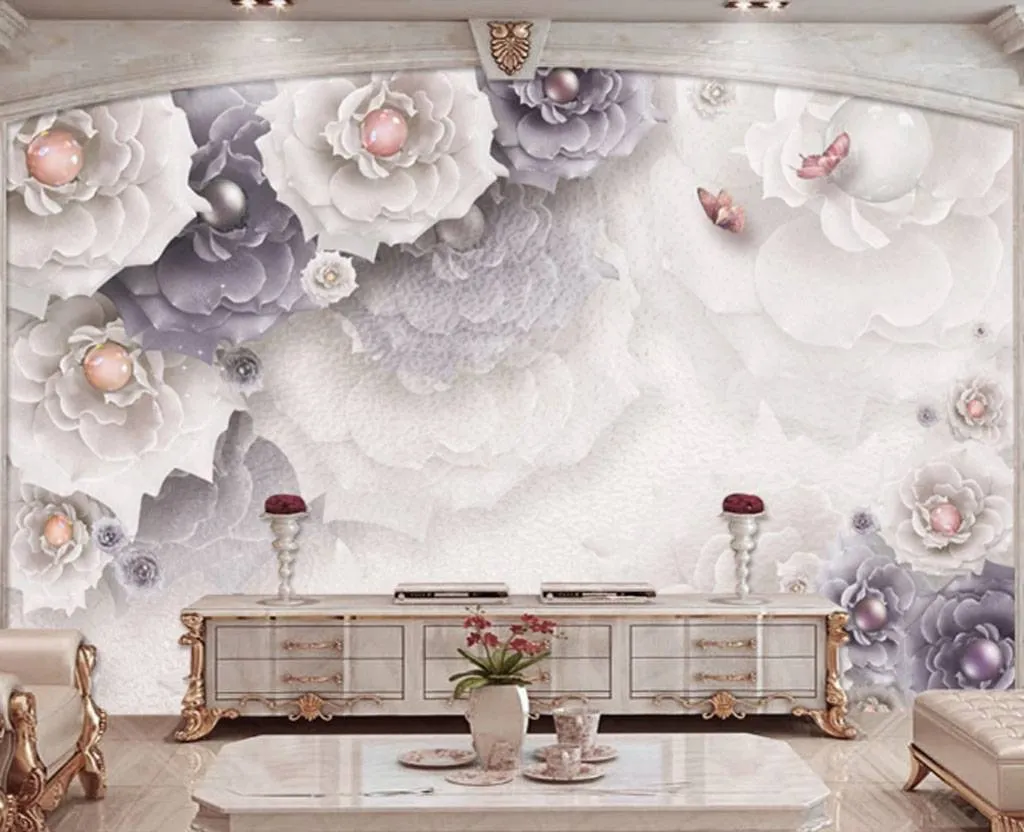 Бесшовные обои на стену: Разноцветный жемчуг в цветах. Артикул: 15-793