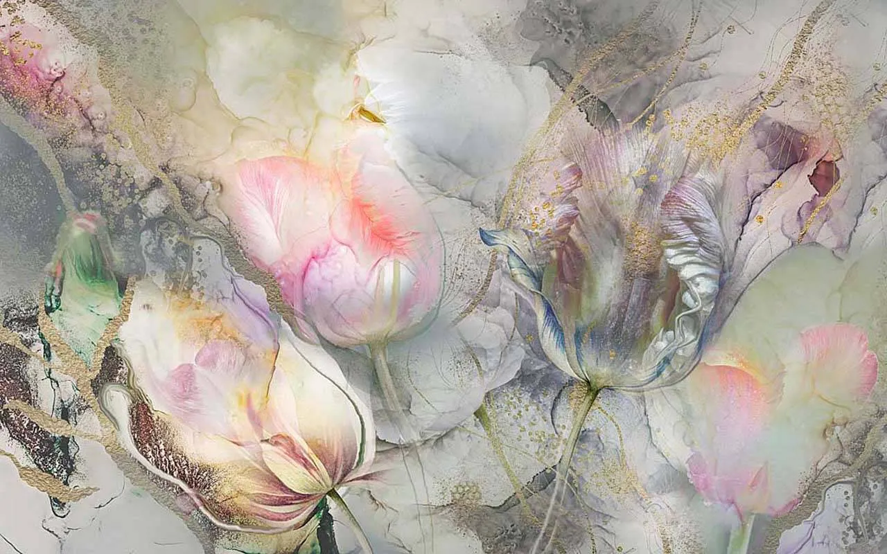 Бесшовные обои на стену: Тюльпаны в камне. Артикул: 7-891