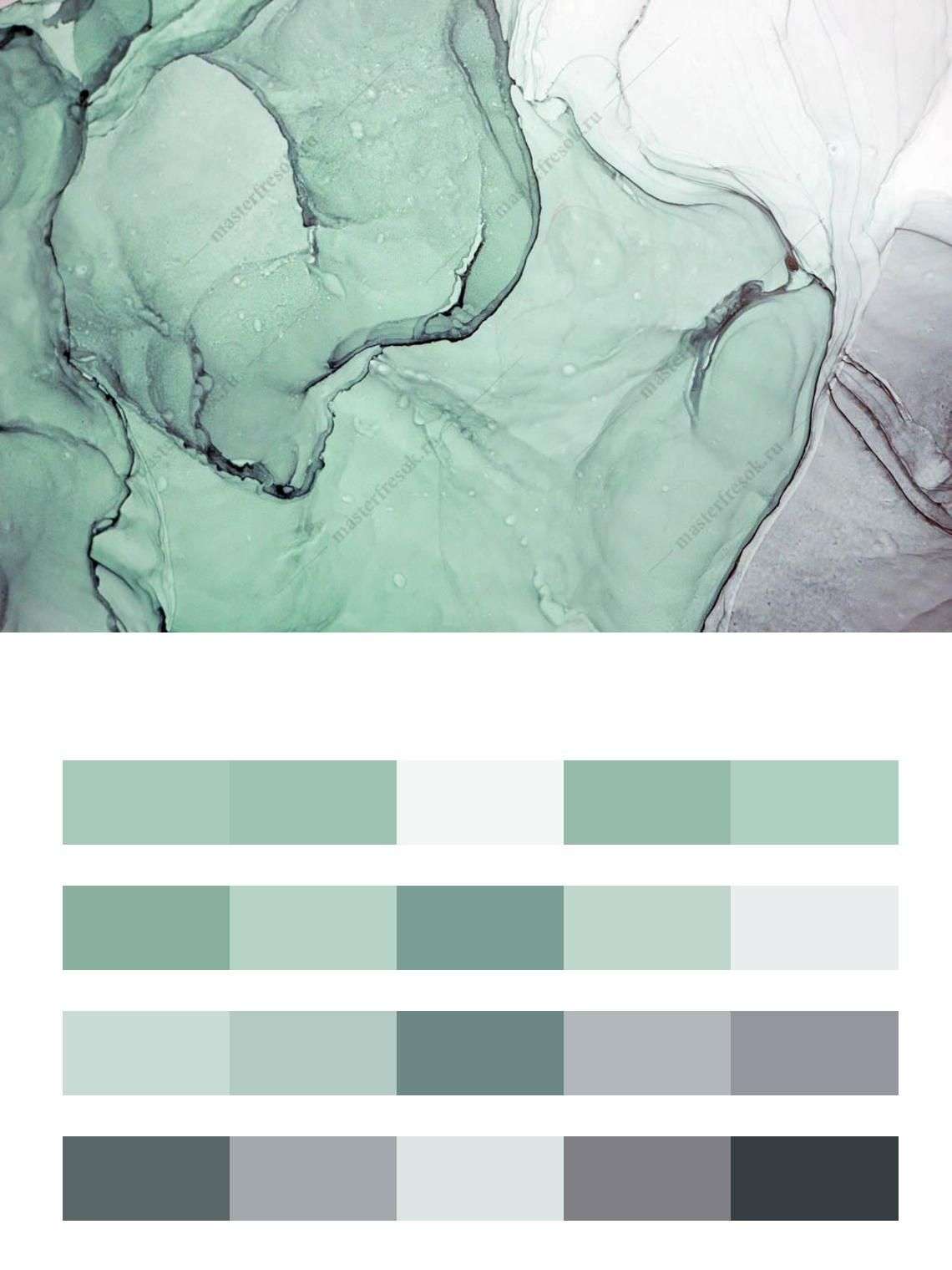 Бесшовные обои на стену: Флюид арт зеленая акварель. Артикул: 9-1021