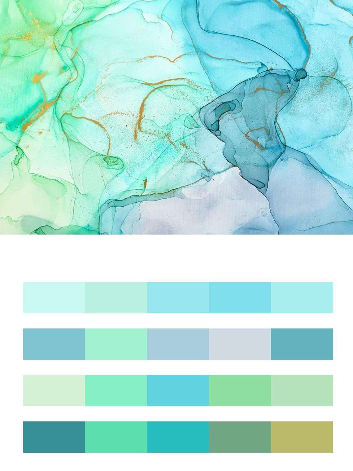 Бесшовные обои на стену: Флюид арт зеленый с голубым. Артикул: 9-1788