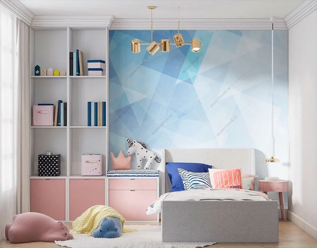 Бесшовные обои на стену: Голубая геометрия градиент. Артикул: 9-1493