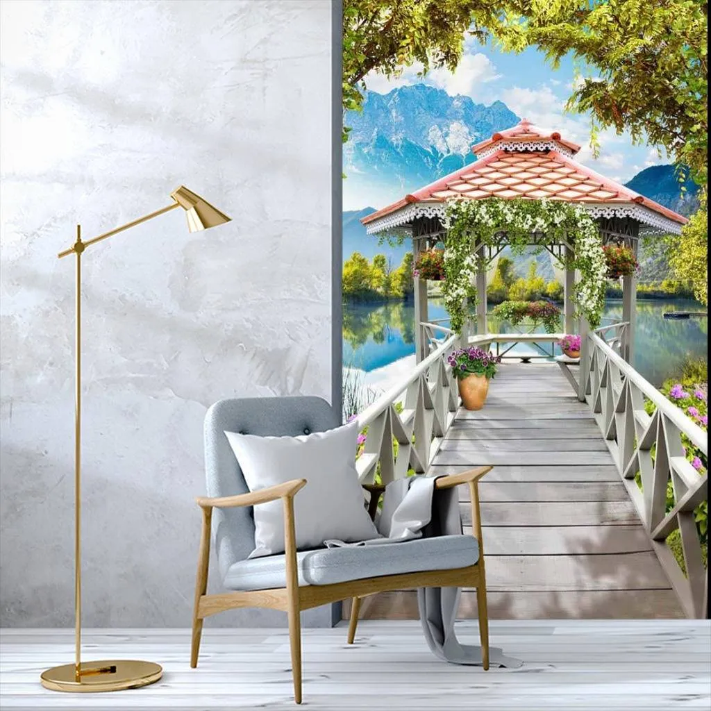 Бесшовные обои на стену: Беседка у воды. Артикул: 17-0021