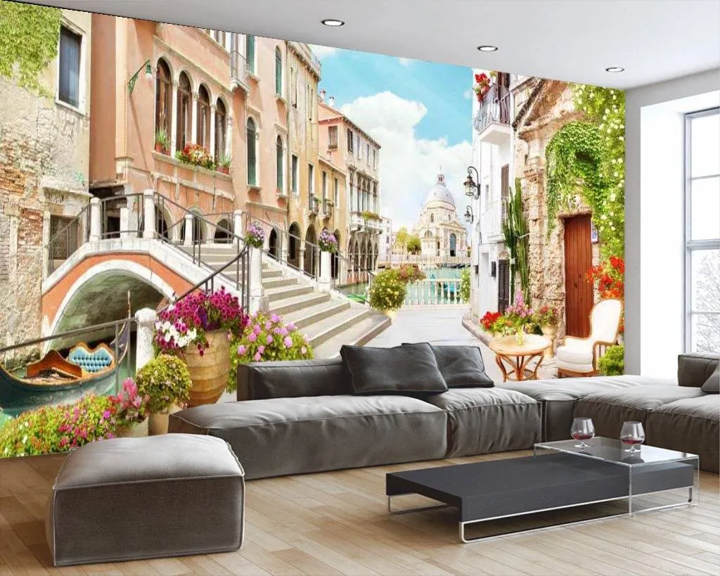 Бесшовные обои на стену: Улочка Венеции в цветах. Артикул: 17-0030
