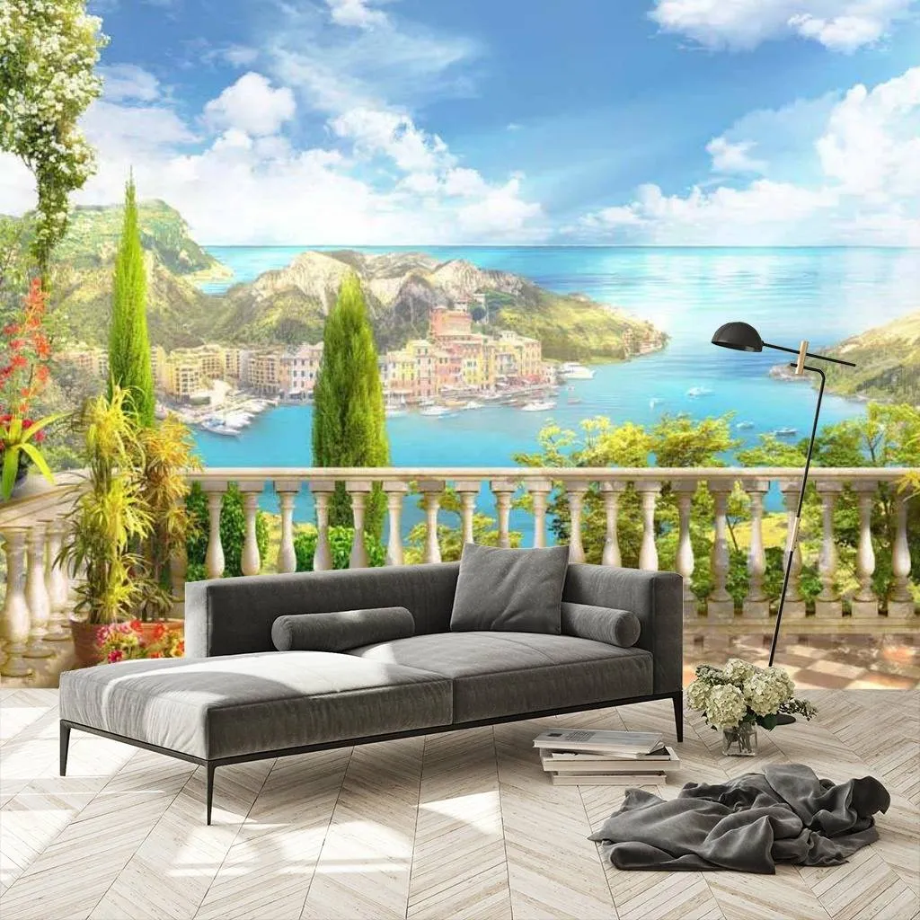 Бесшовные обои на стену: Терраса с видом на приморский город. Артикул: 17-0055