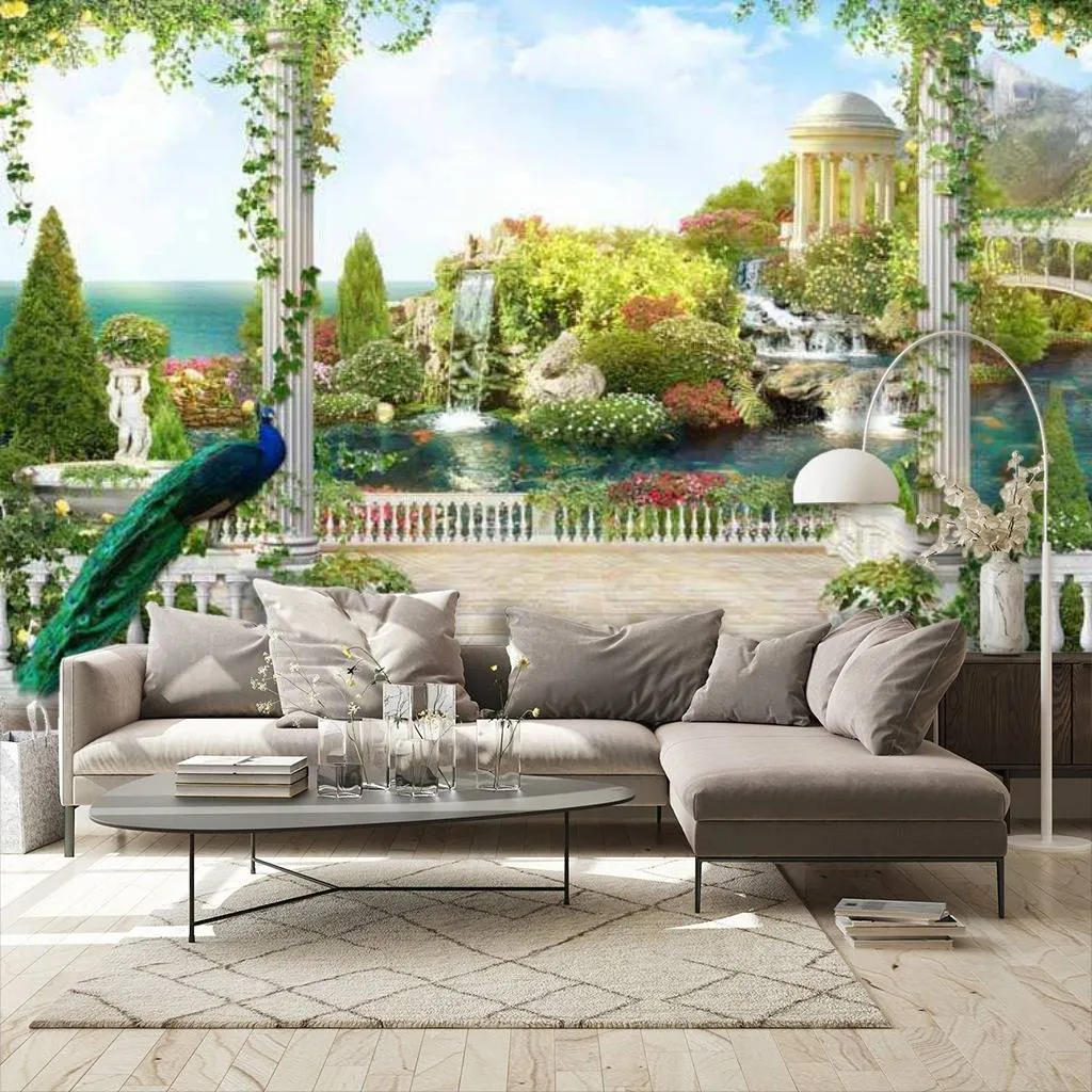 Бесшовные обои на стену: Терраса с павлином. Артикул: 17-0065