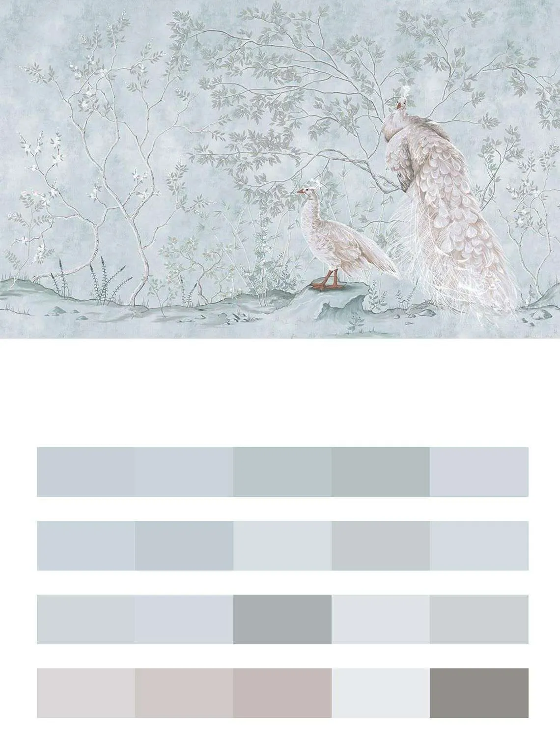 Бесшовные обои на стену: Благородные белые павлины. Артикул: 9-1819