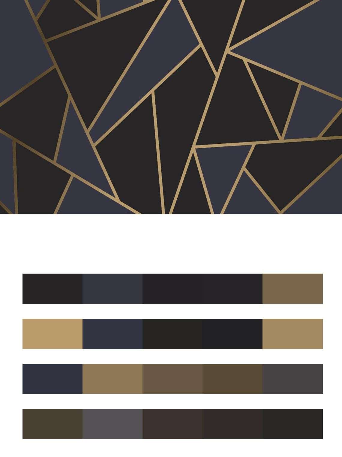 Бесшовные обои на стену: Золотые треугольники на черном фоне. Артикул: 9-1492