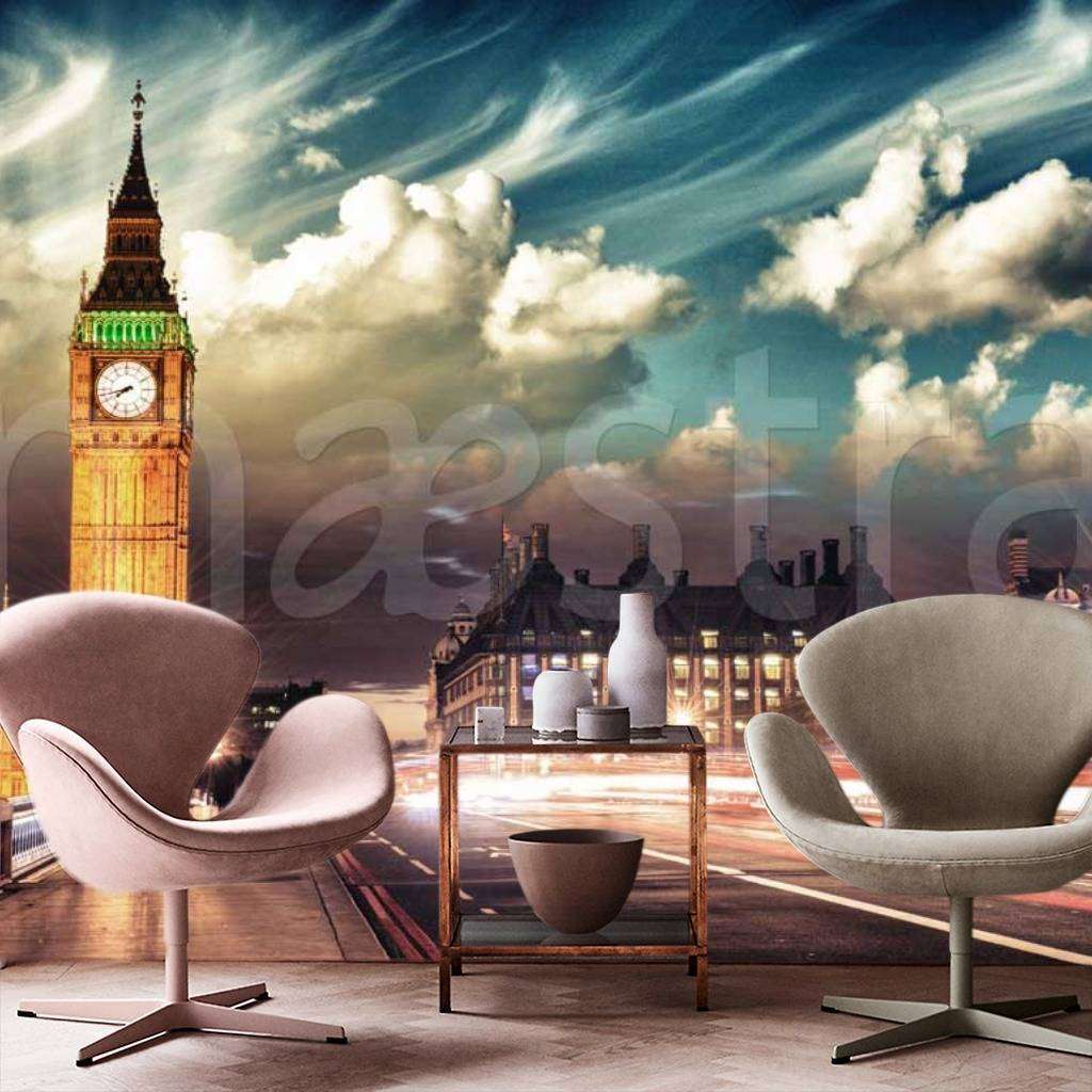 Бесшовные обои на стену: Лондон и фэнтези облака. Артикул: 9-483