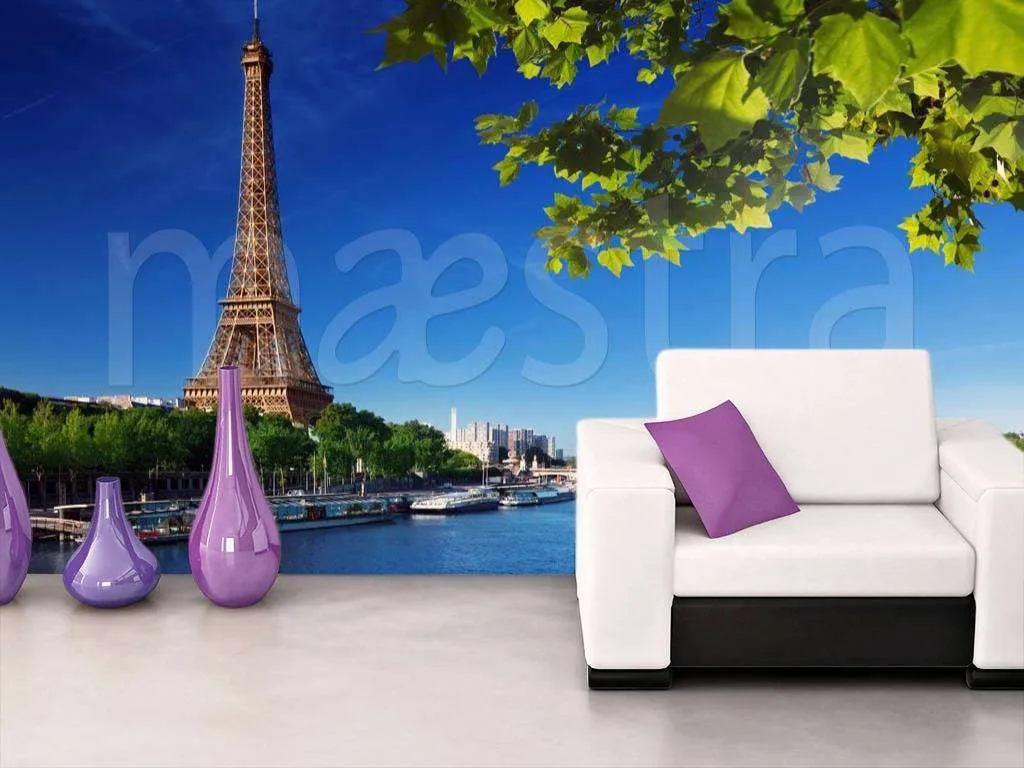 Бесшовные обои на стену: Эйфелева башня через реку. Артикул: 4-195