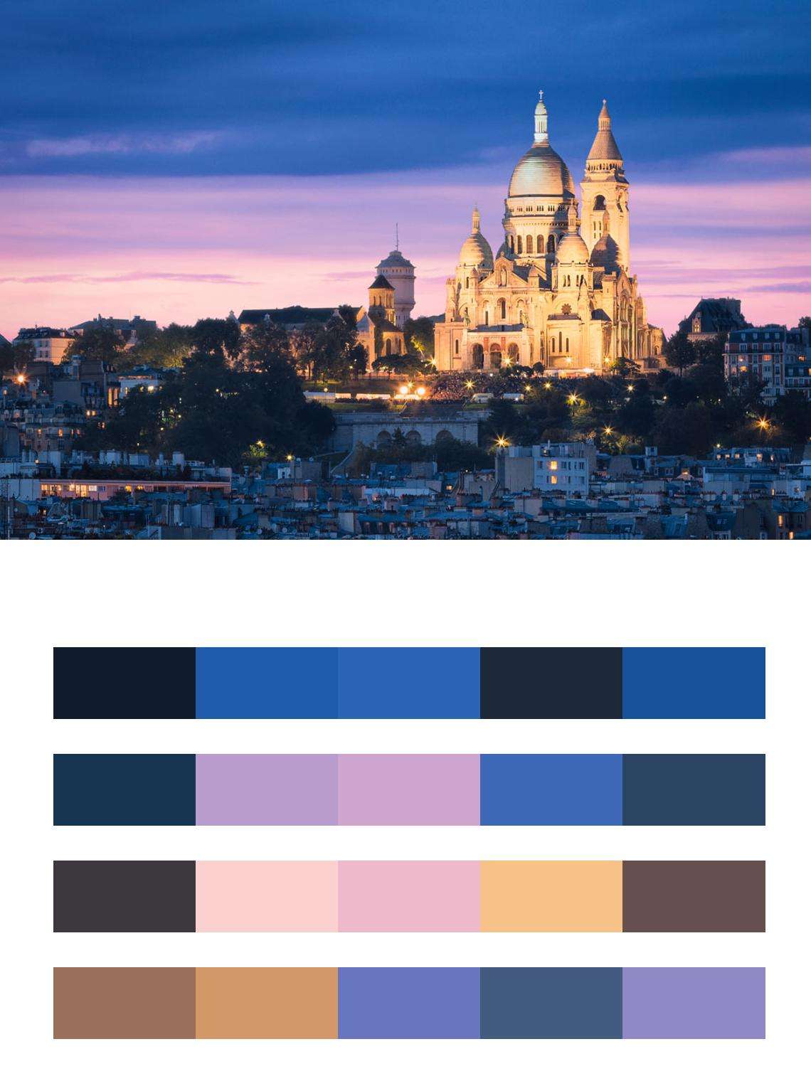 Бесшовные обои на стену: Ночной Париж Базилика Сакре-Кёр. Артикул: 9-720