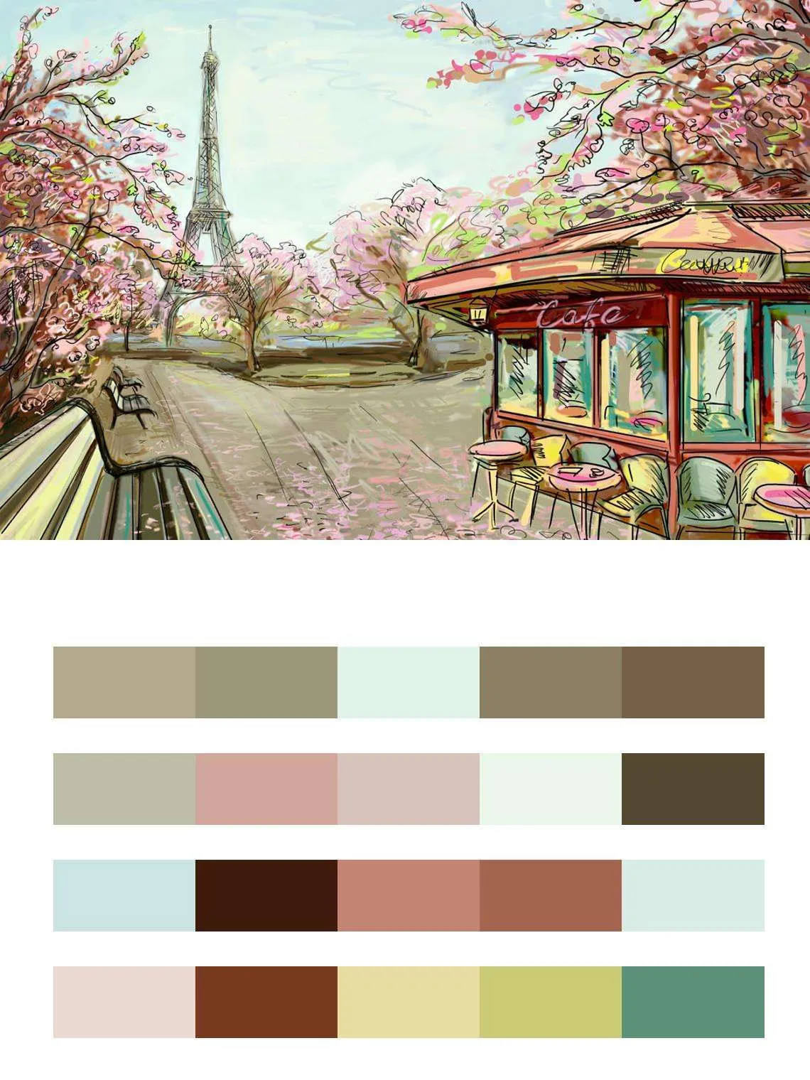 Бесшовные обои на стену: Улочка в Париже с видом на эйфелеву башню карандашами. Артикул: 9-774