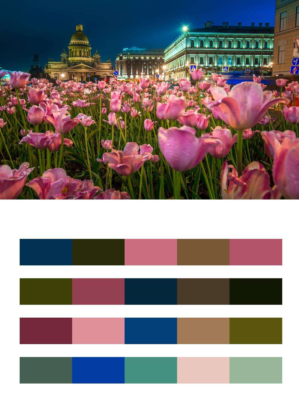 Бесшовные обои на стену: Розовые тюльпаны у Исаакиевского собора. Артикул: 9-663