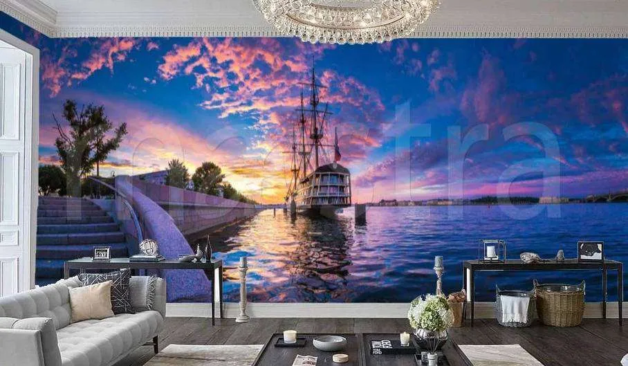 Бесшовные обои на стену: Корабль на реке Нева. Артикул: 9-666