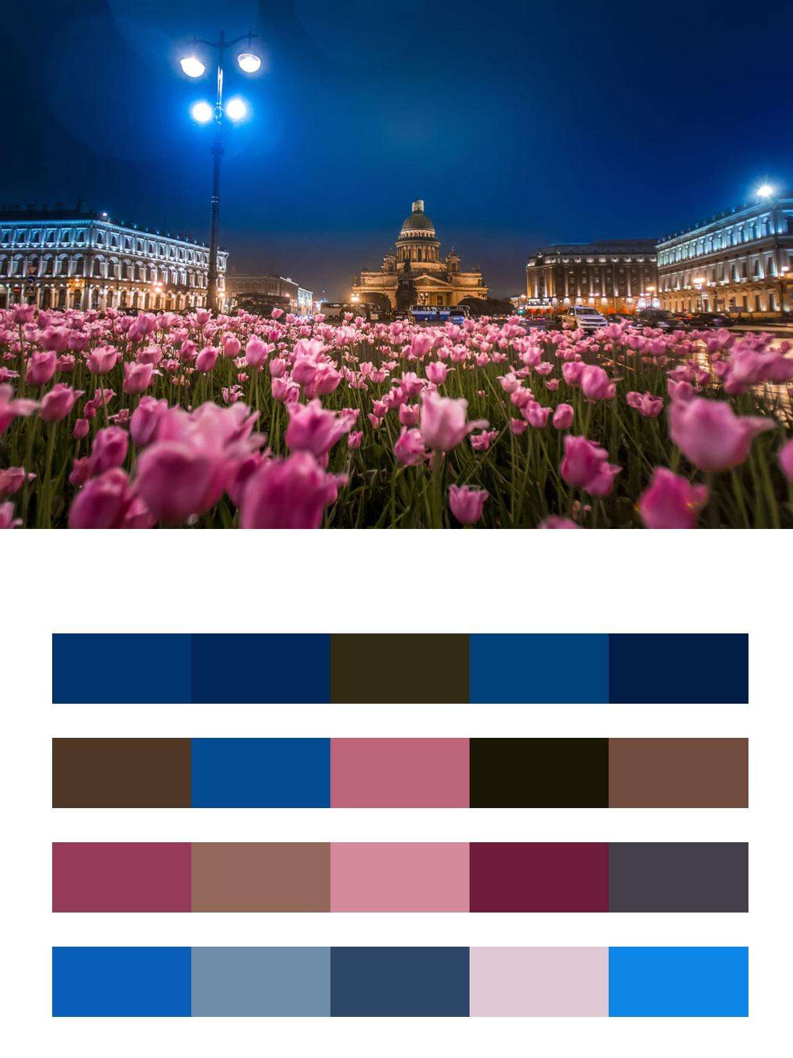 Бесшовные обои на стену: Розовые тюльпаны у Исаакиевского собора в ночи. Артикул: 9-668