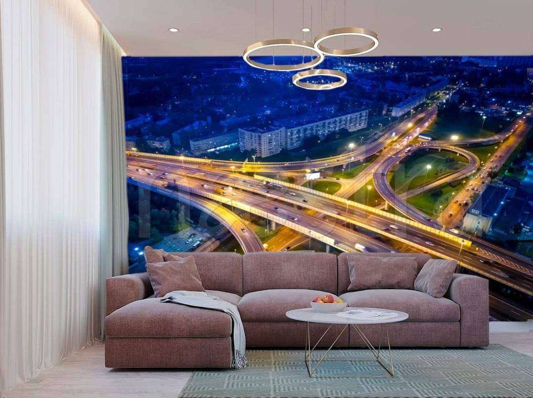 Бесшовные обои на стену: Эстакады ночь. Артикул: 9-690
