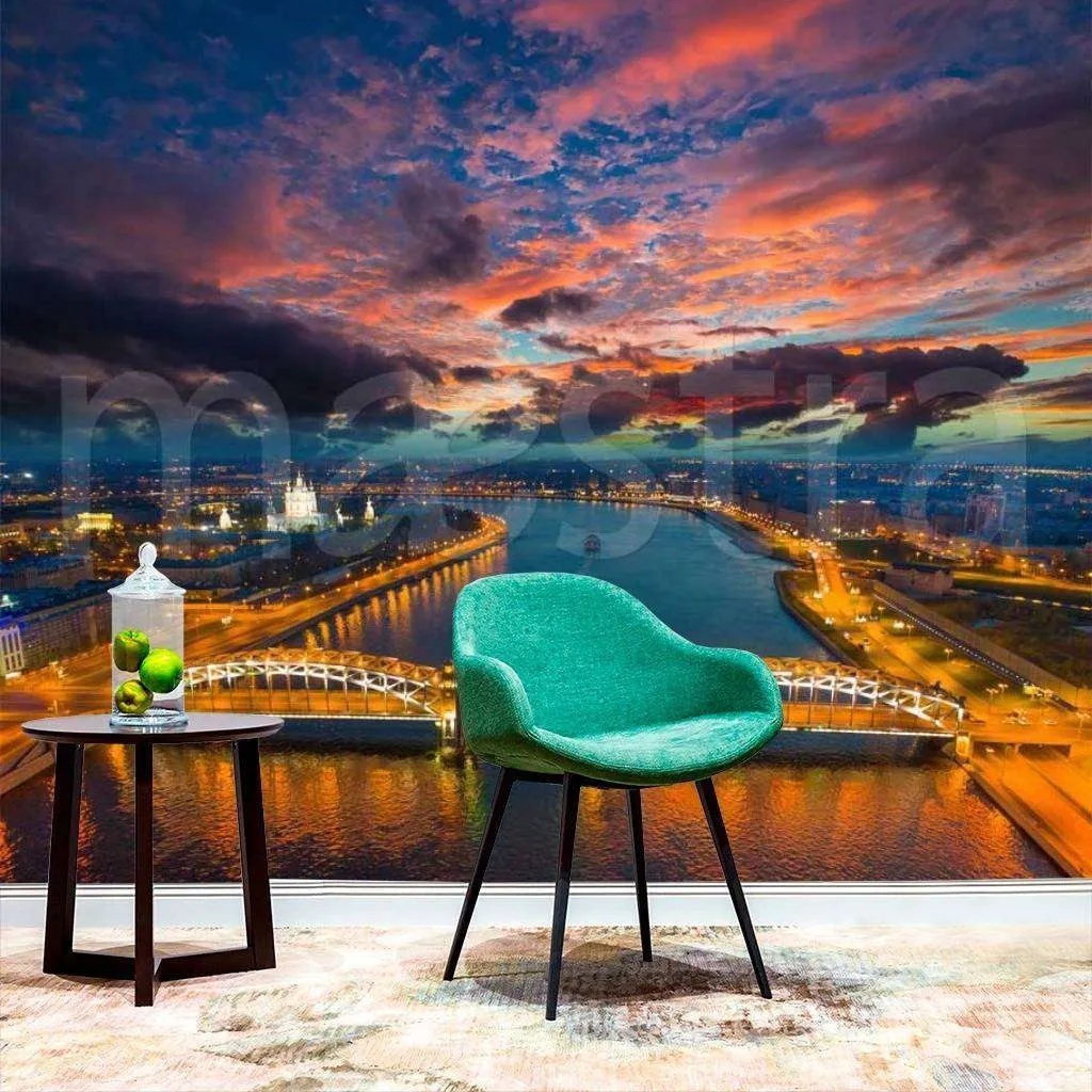Бесшовные обои на стену: Большеохтинский мост. Артикул: 9-692