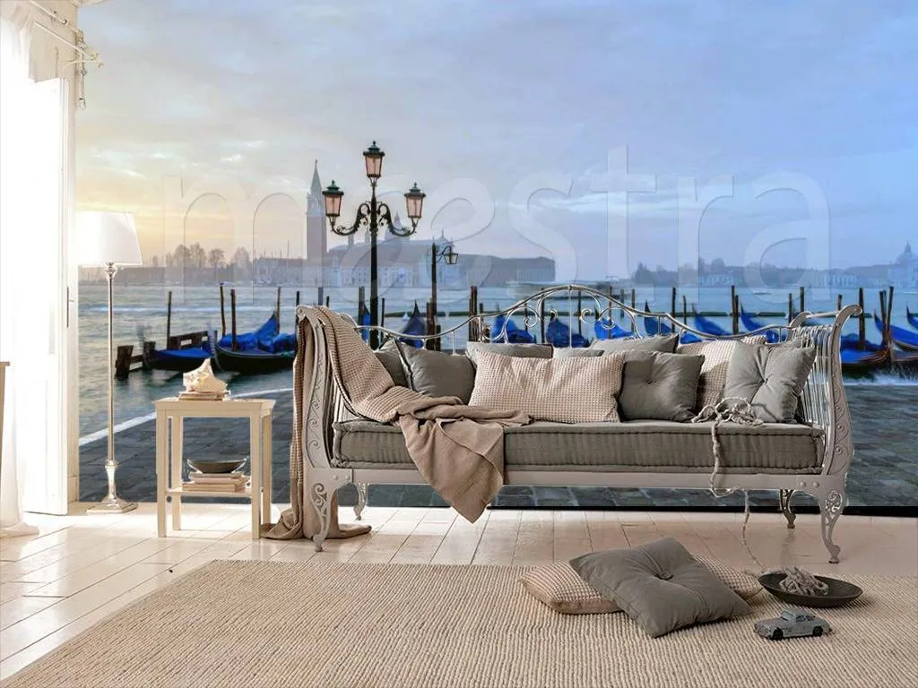 Бесшовные обои на стену: Гондолы в вечерней Венеции. Артикул: 4-273