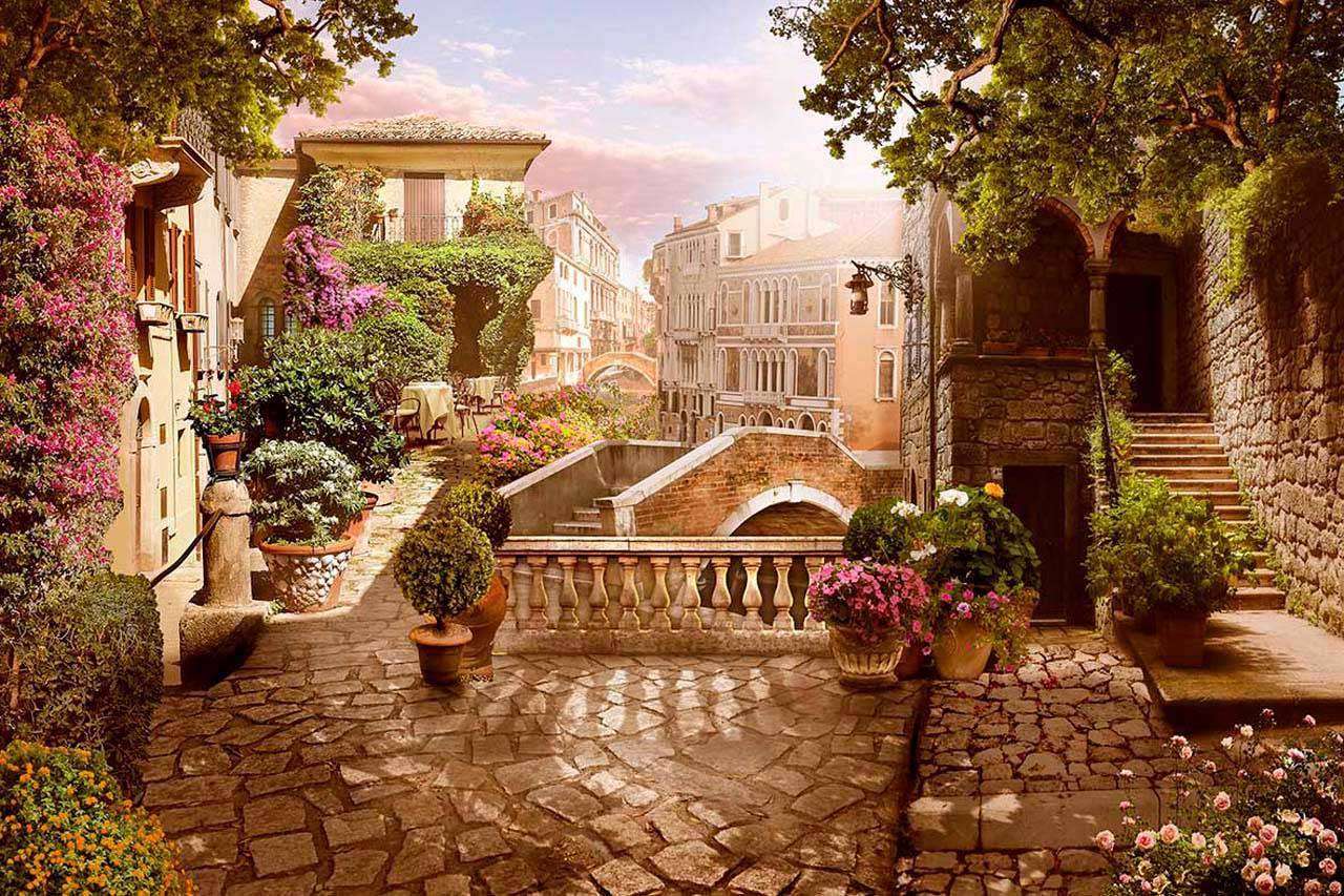 Бесшовные обои на стену: Улица старого города с видом на балкон. Артикул: 7-215