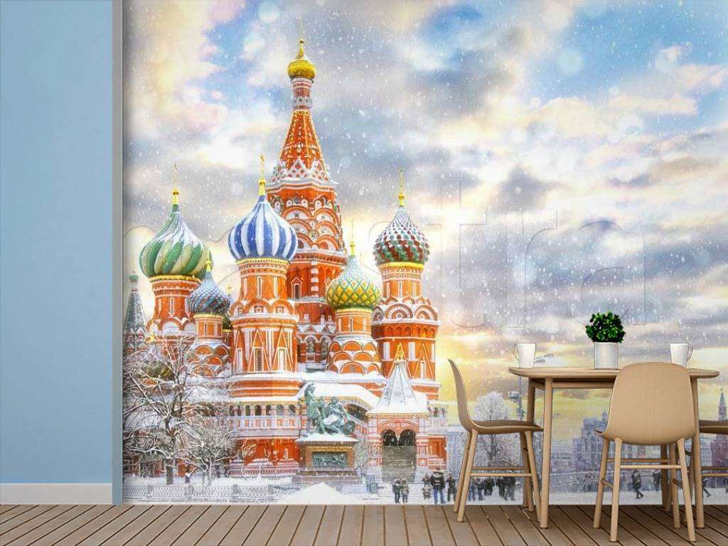 Бесшовные обои на стену: Зимний вид на собор Василия Блаженного. Артикул: 9-416