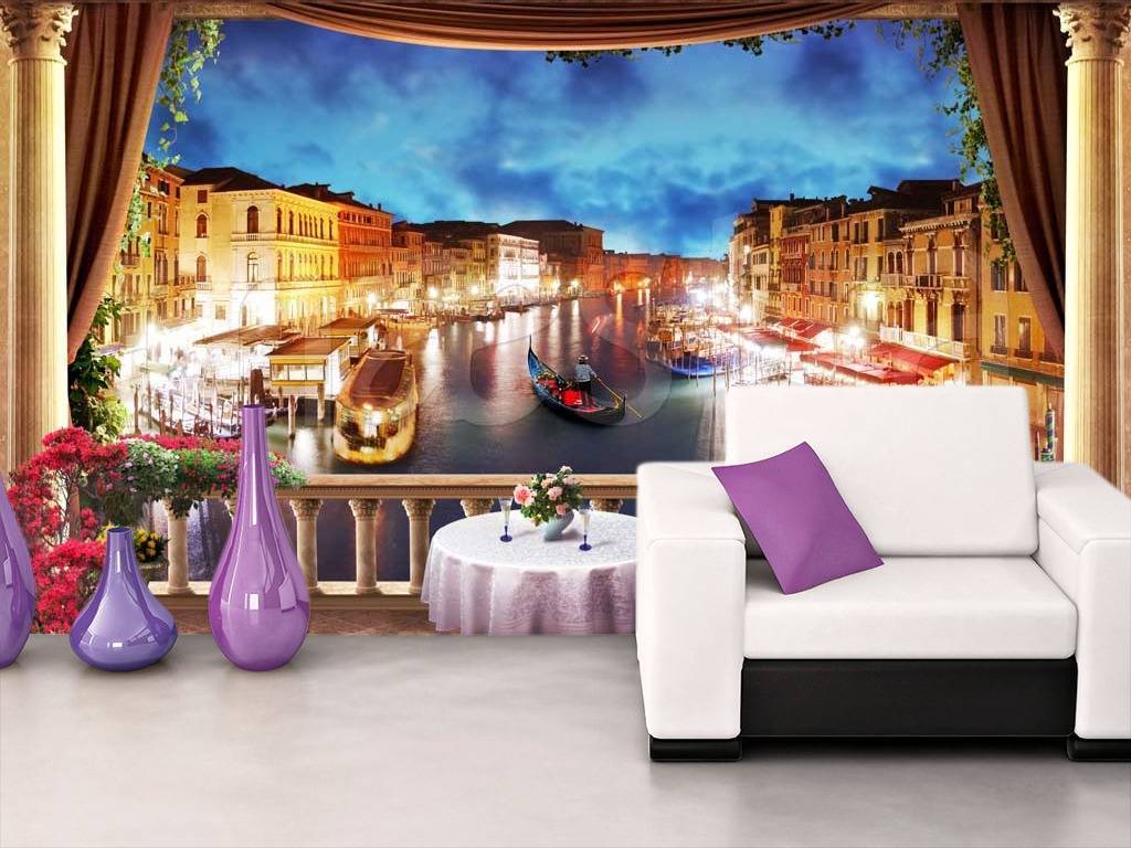 Бесшовные обои на стену: Кафе на балконе ночной Венеции. Артикул: 11-156