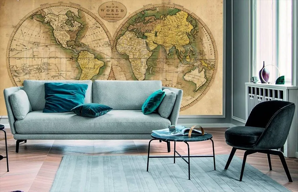Бесшовные обои на стену: Старинная политическая карта мира в бежевых тонах. Артикул: 1-094