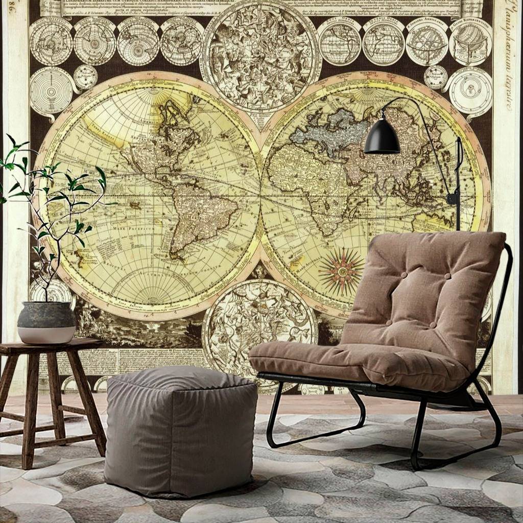 Бесшовные обои на стену: Политическая карта мира для кабинета. Артикул: 1-096