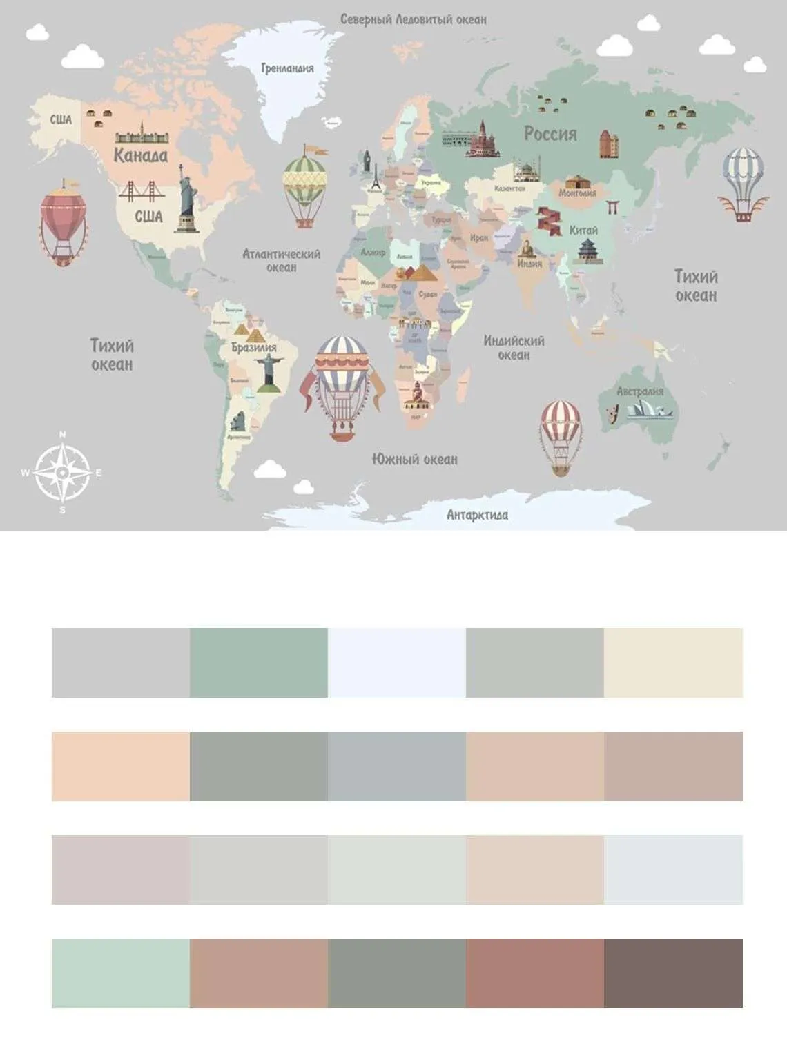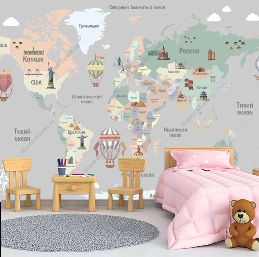 Бесшовные обои на стену: Карта для детей. Артикул: 12-1001