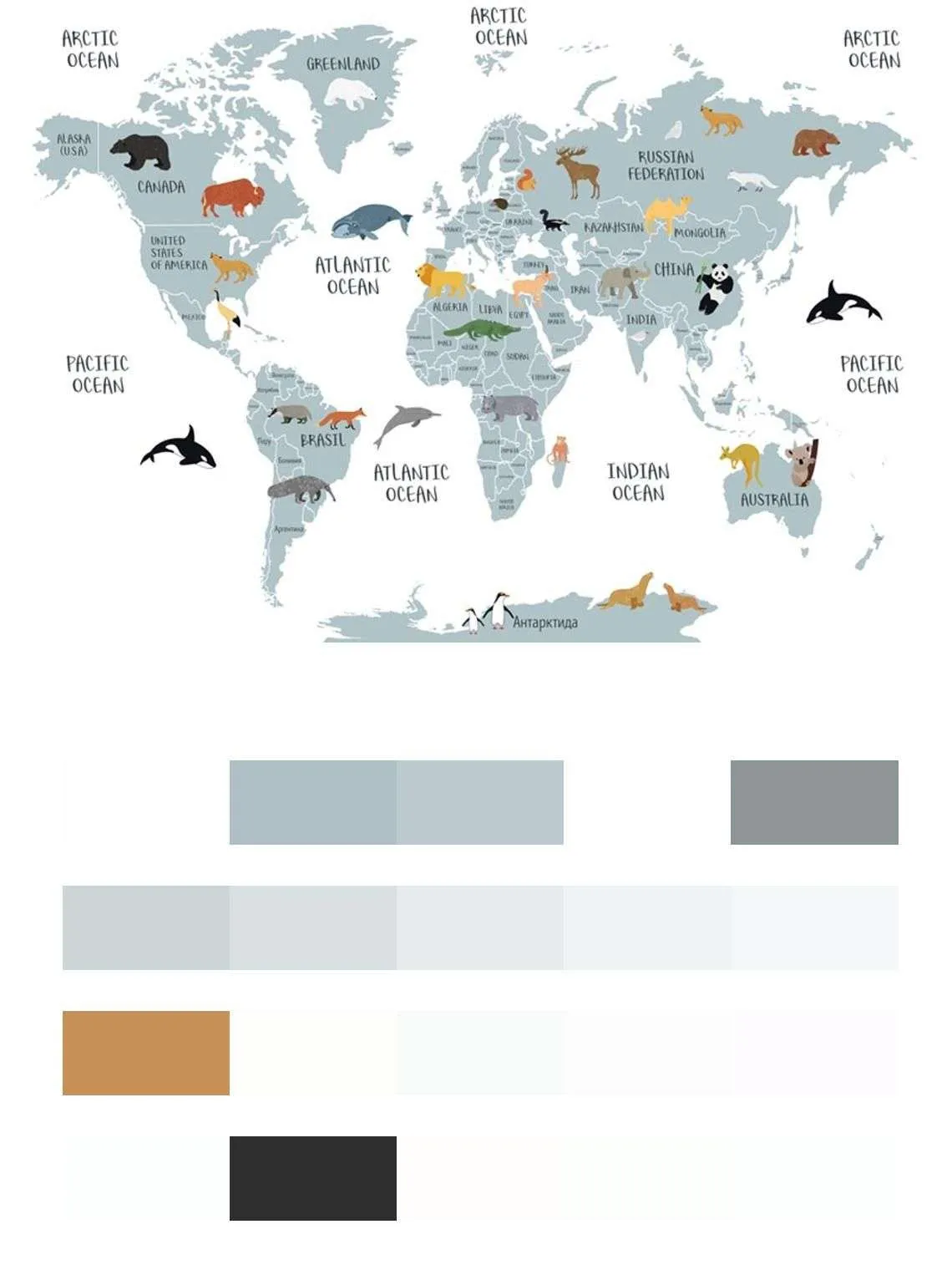 Бесшовные обои на стену: Карта с русскими названиями. Артикул: 12-1005