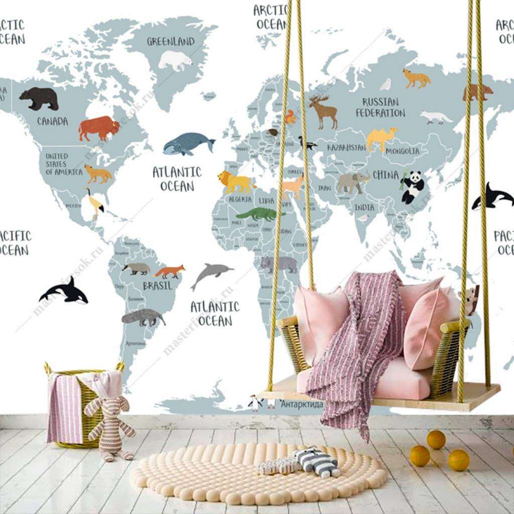 Бесшовные обои на стену: Карта с русскими названиями. Артикул: 12-1005