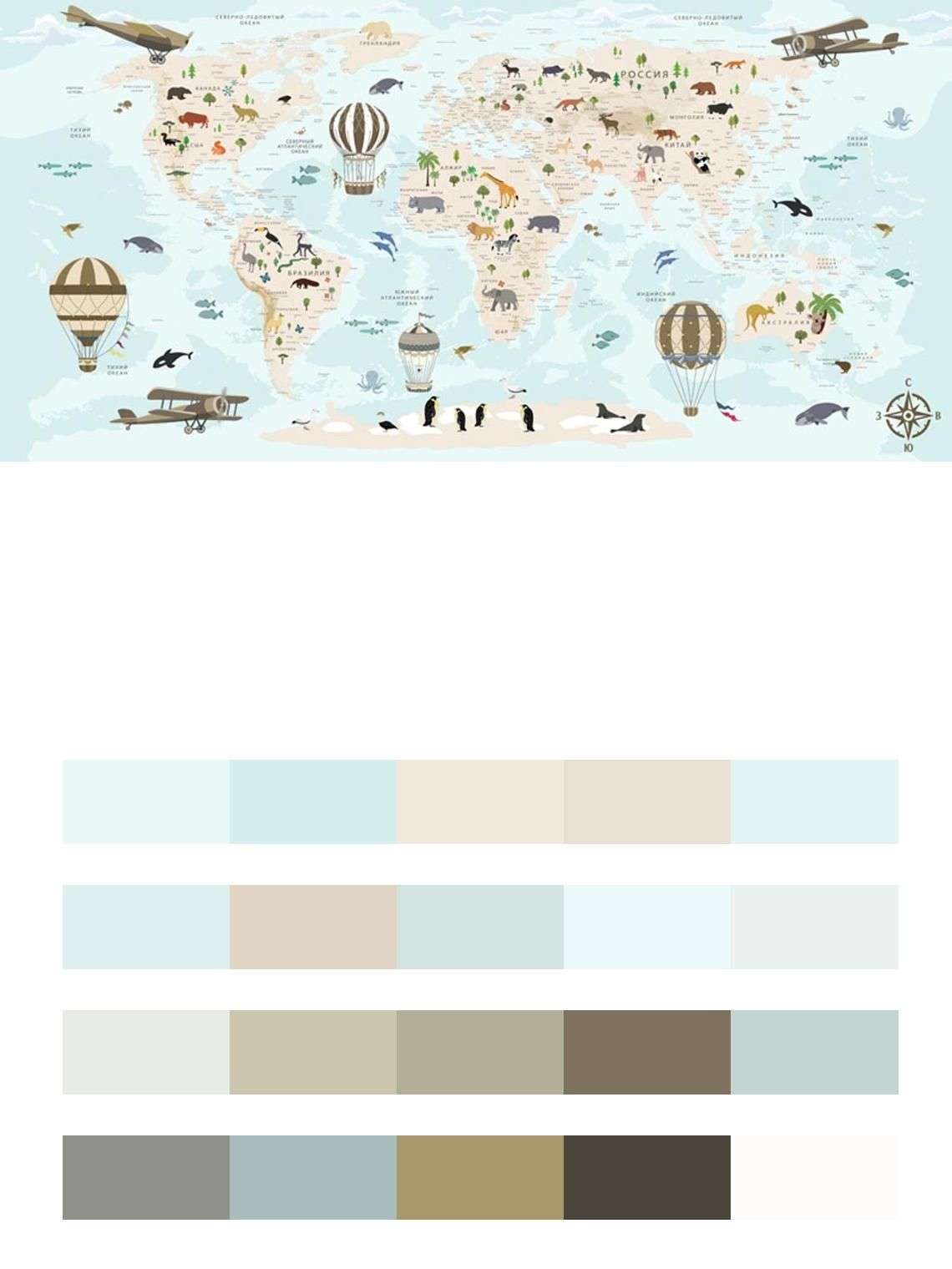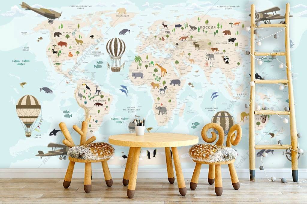 Бесшовные обои на стену: Карта голубая в детскую. Артикул: 12-1007