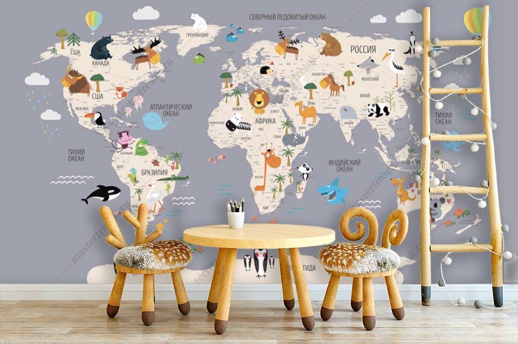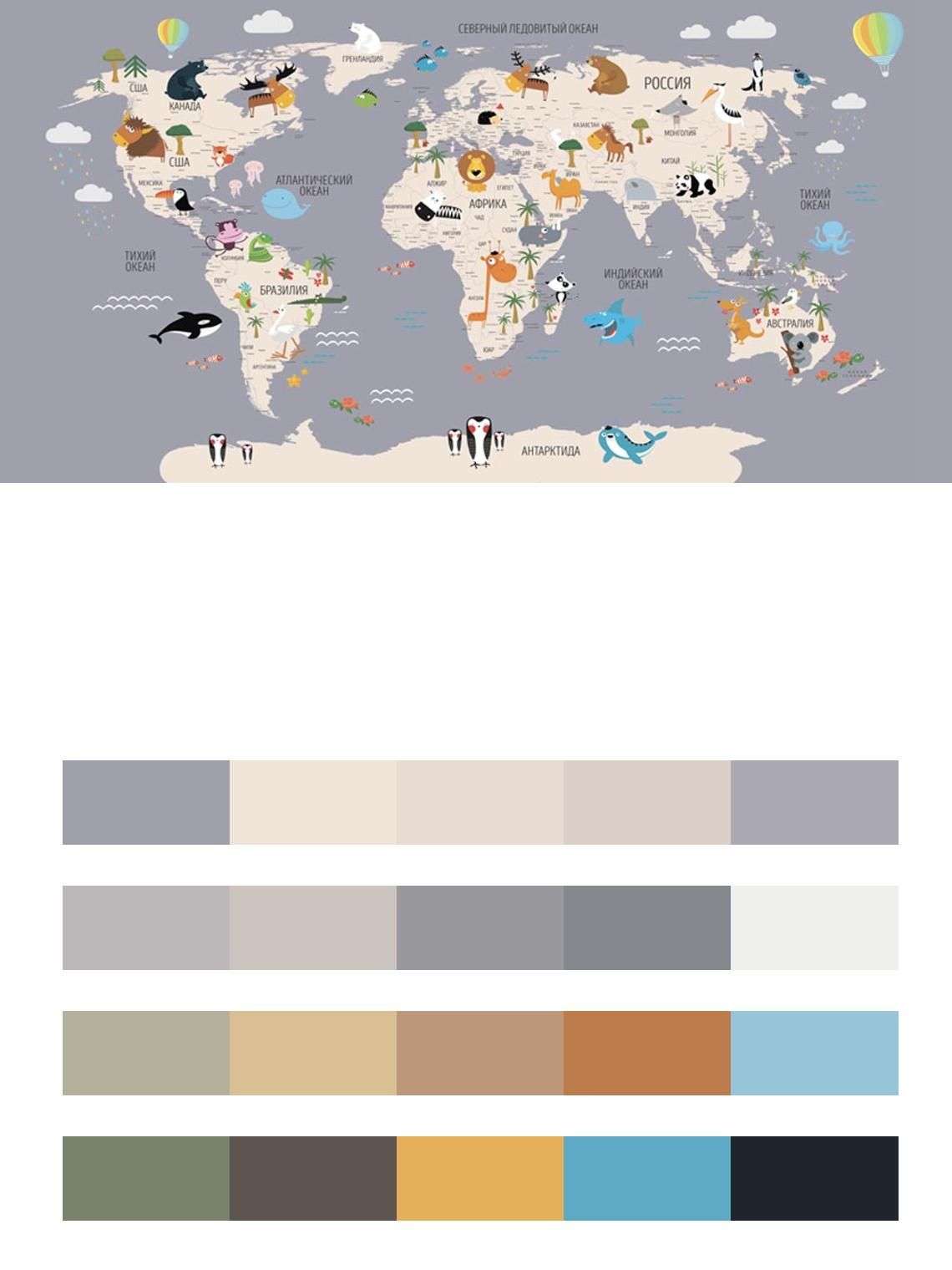 Бесшовные обои на стену: Карта цветная на сером фоне. Артикул: 12-1009