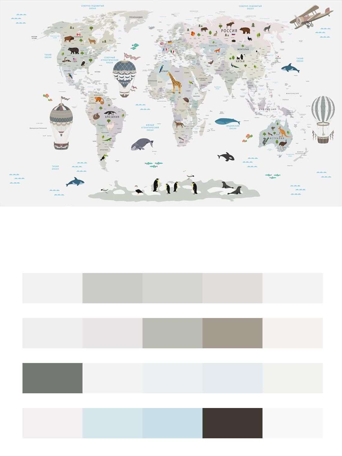 Бесшовные обои на стену: Карта мира светло серая. Артикул: 12-1015