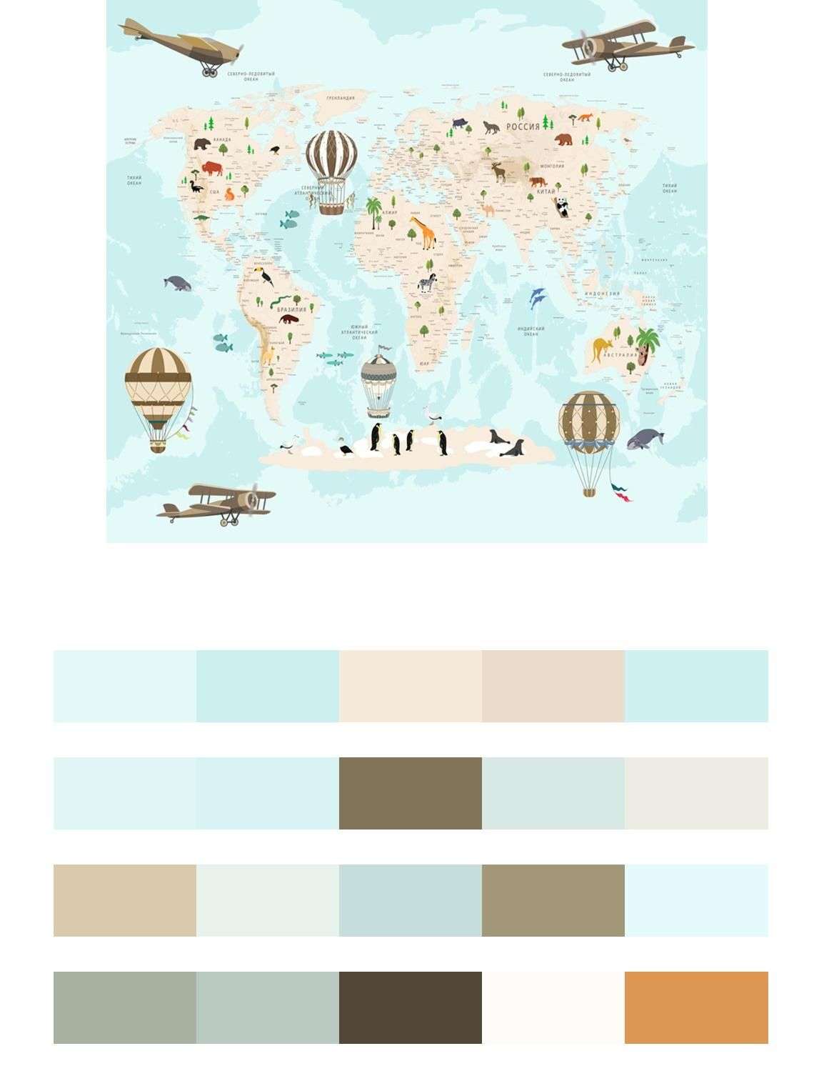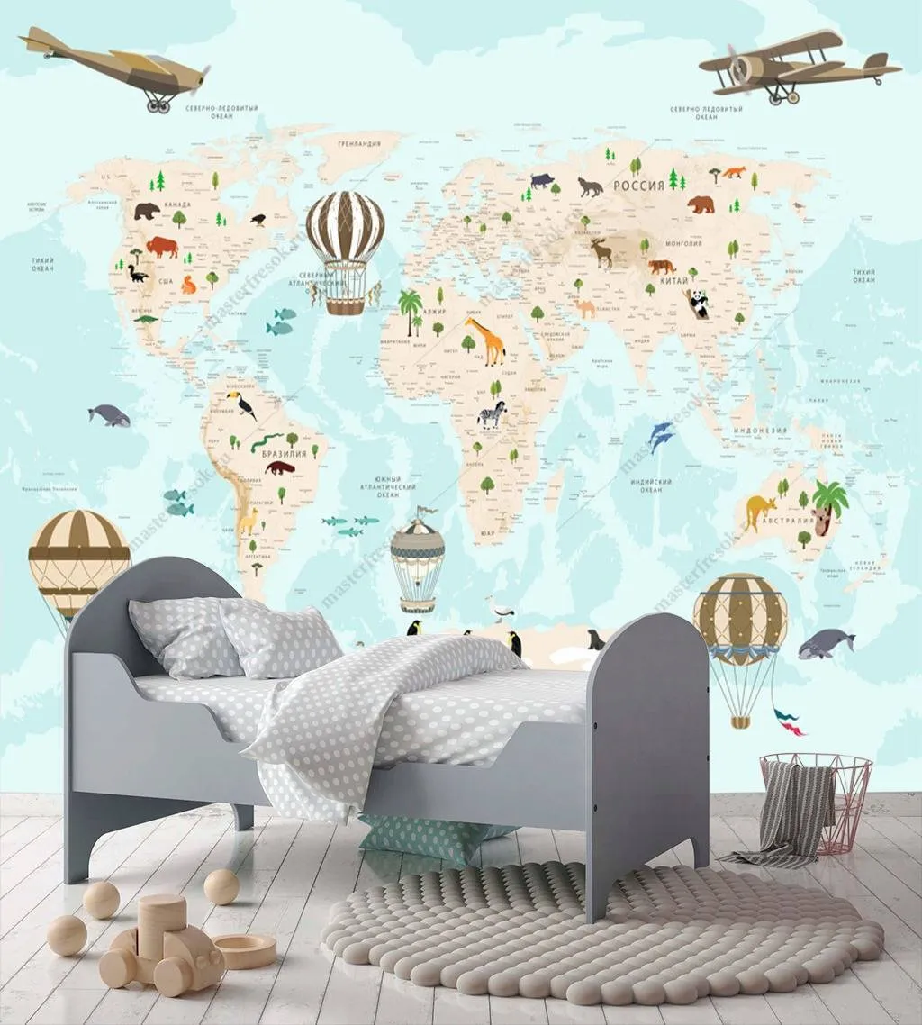 Бесшовные обои на стену: Карта мира русская. Артикул: 12-975