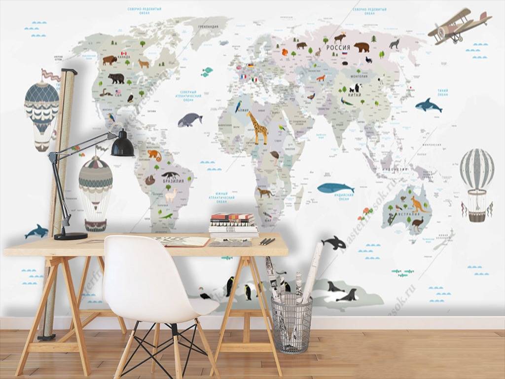 Бесшовные обои на стену: Карта мира на русском большая. Артикул: 12-984