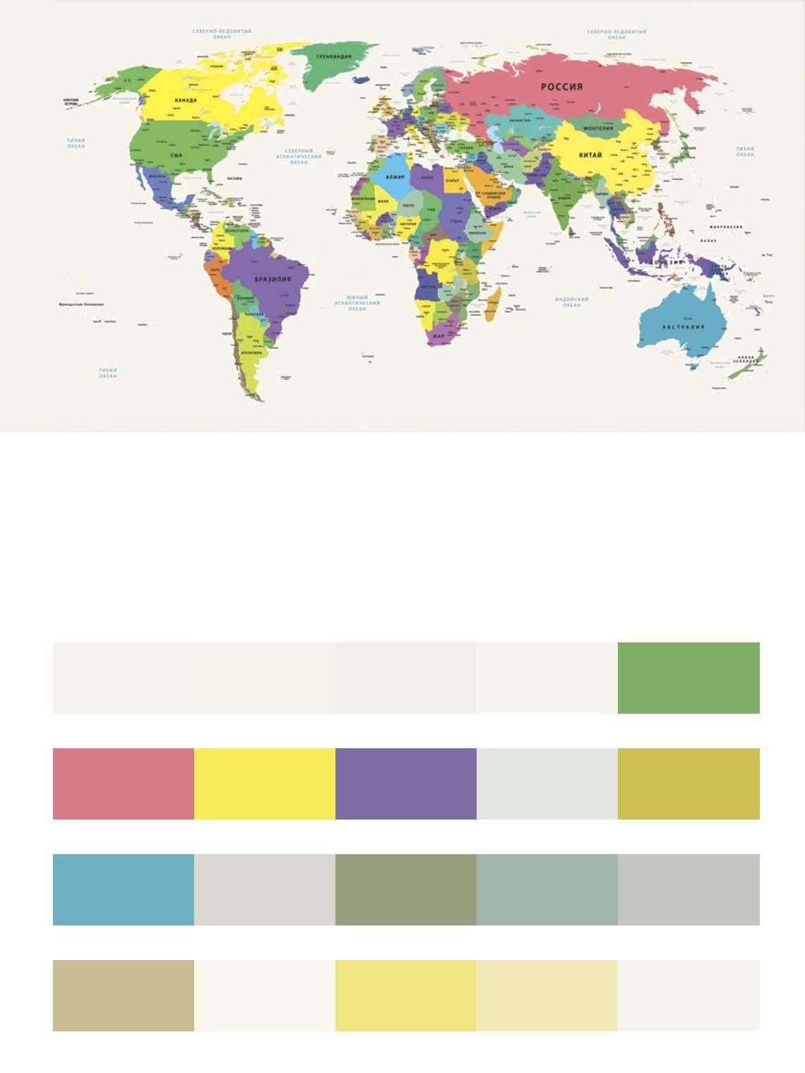 Бесшовные обои на стену: Карта мира разноцветная. Артикул: 12-989