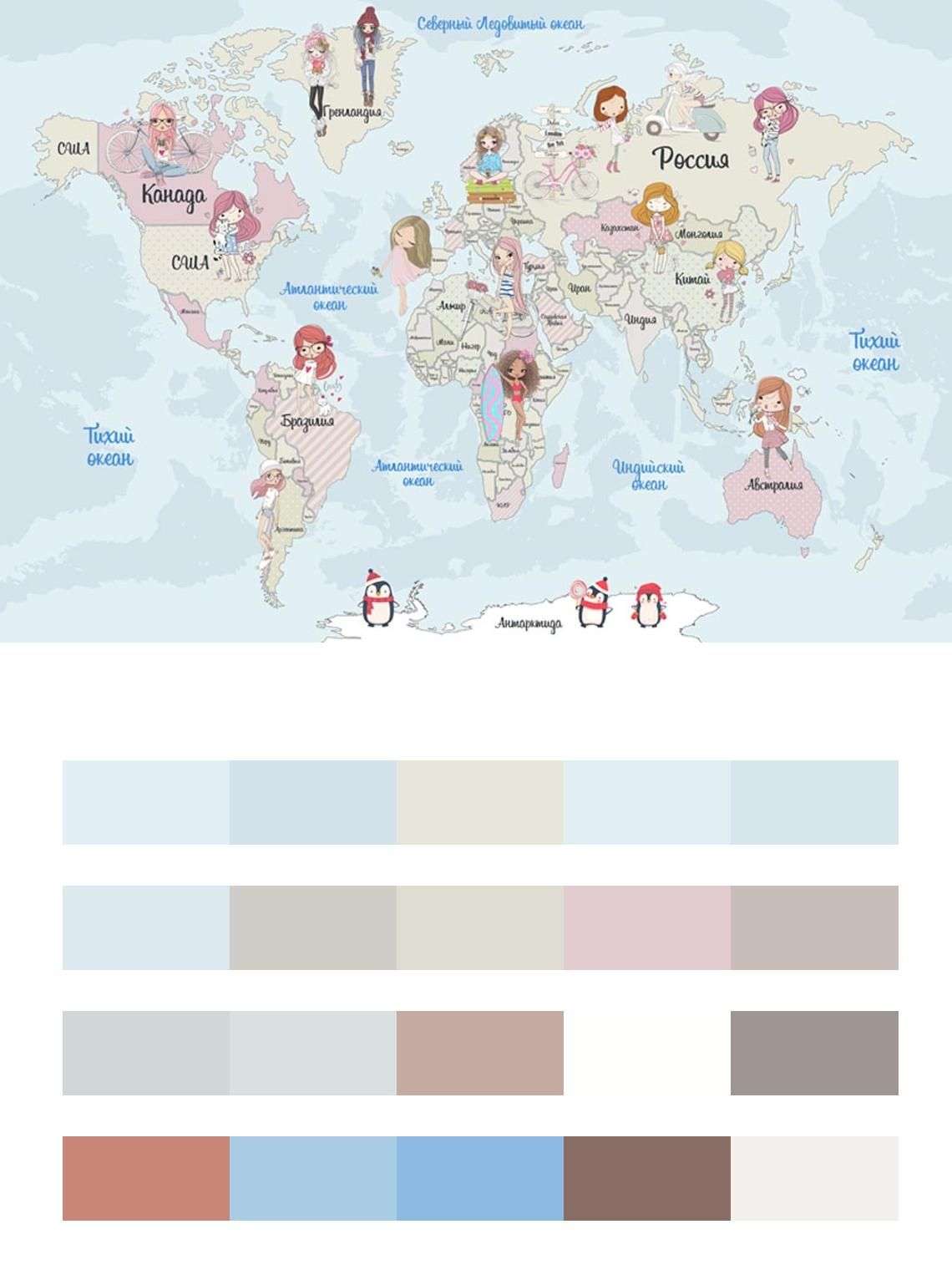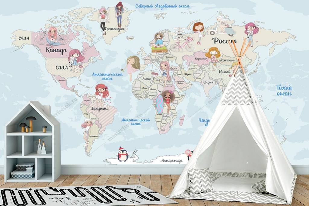 Бесшовные обои на стену: Карта с девочками. Артикул: 12-994