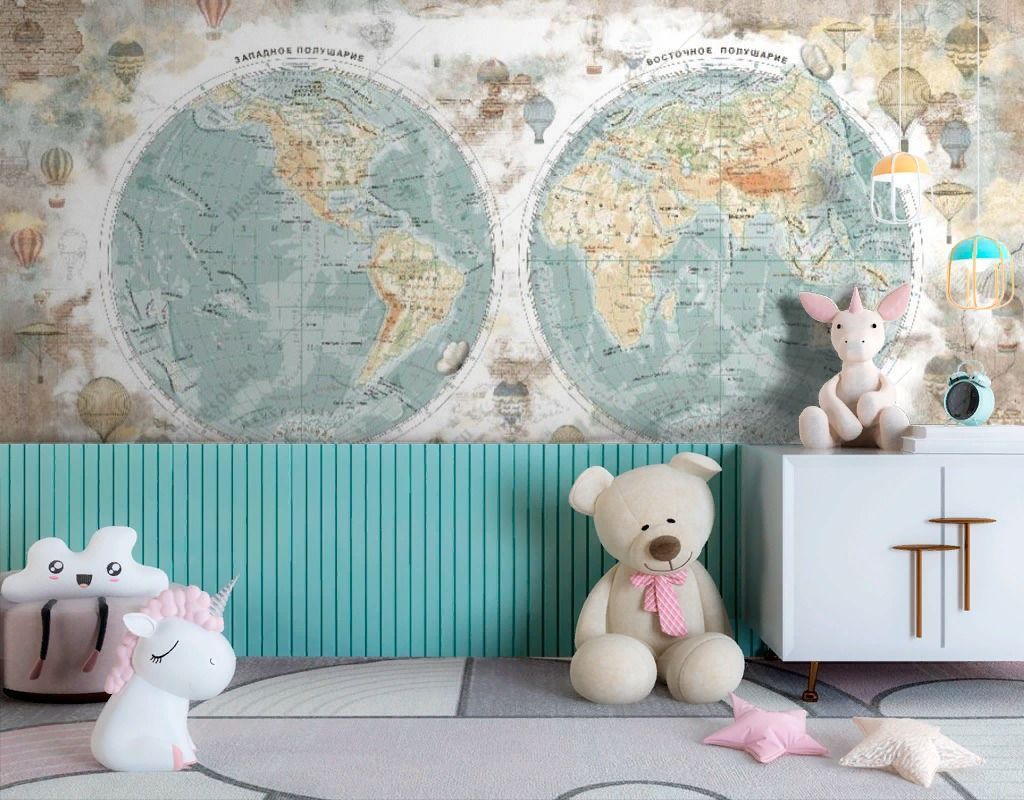 Бесшовные обои на стену: Винтажная карта мира. Артикул: 14-585