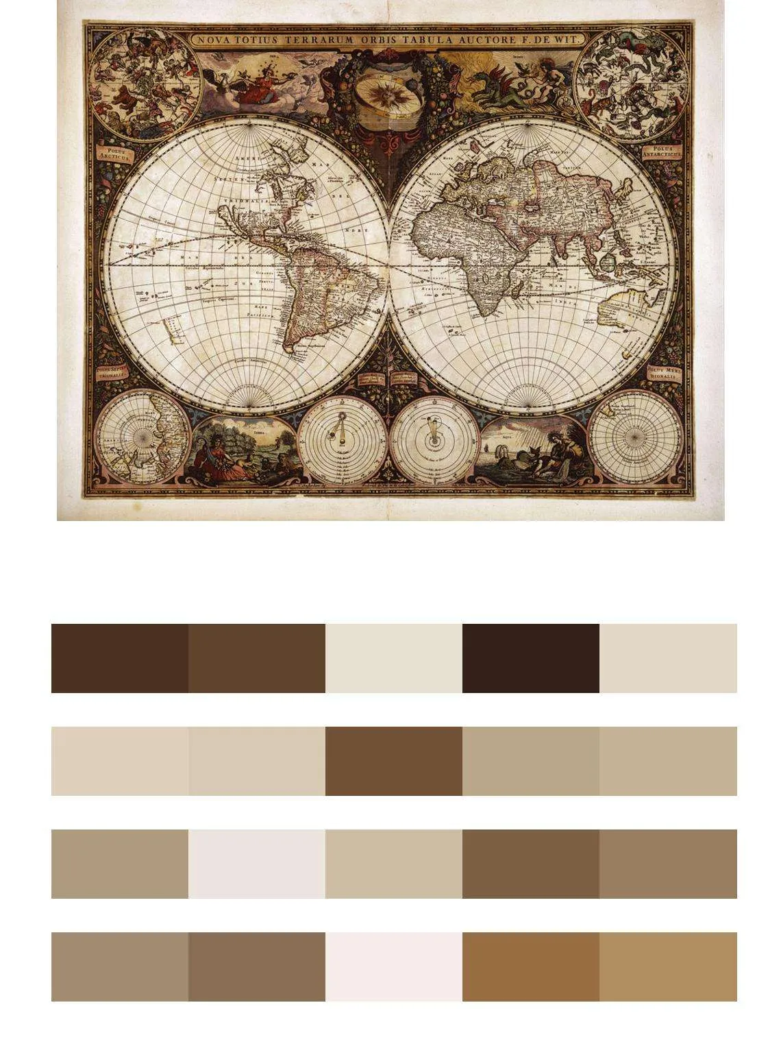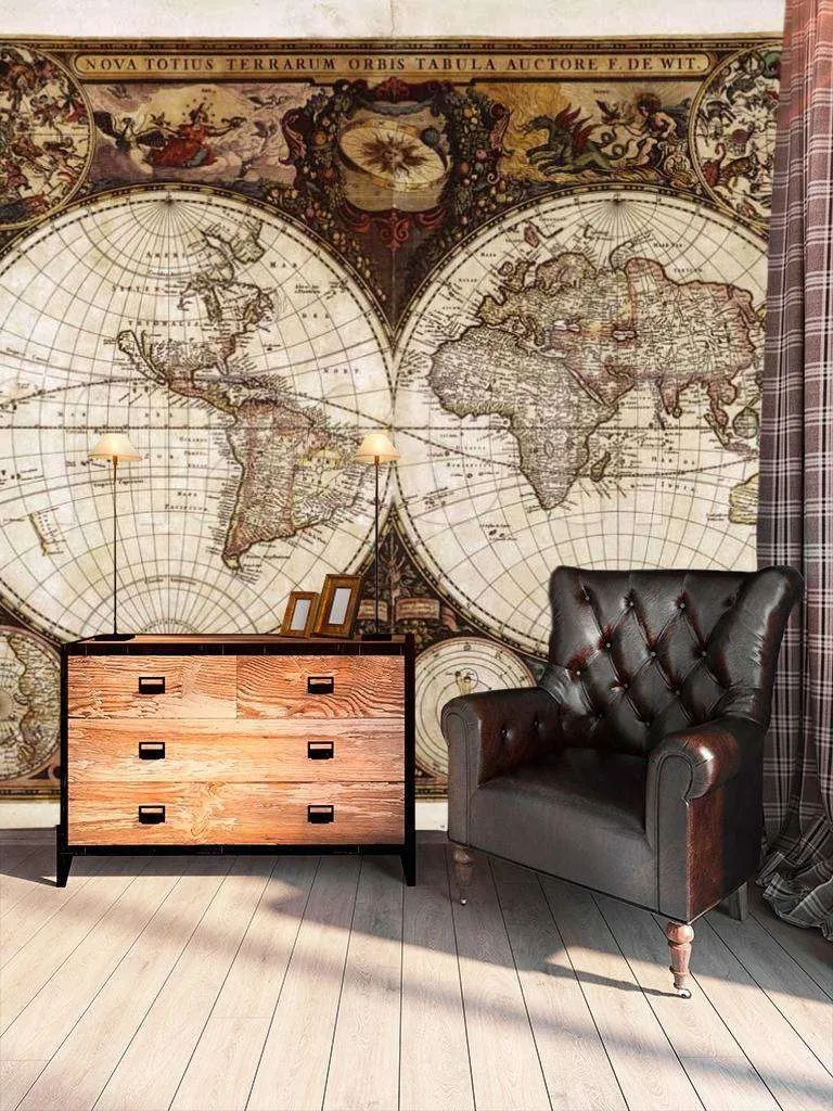 Бесшовные обои на стену: Старинная карта двух полушарий. Артикул: 9-424