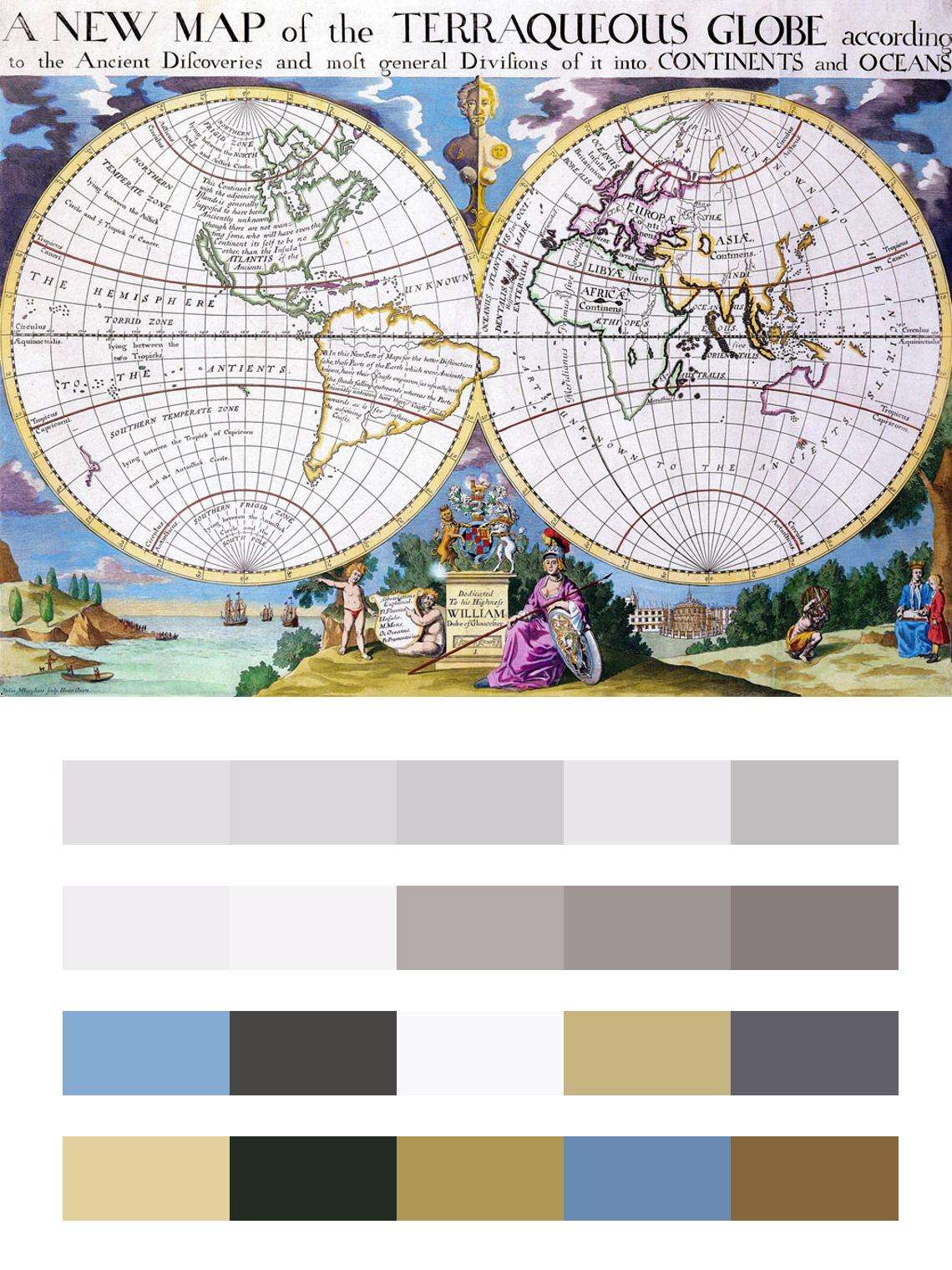 Бесшовные обои на стену: Старая карта континентов. Артикул: 9-426