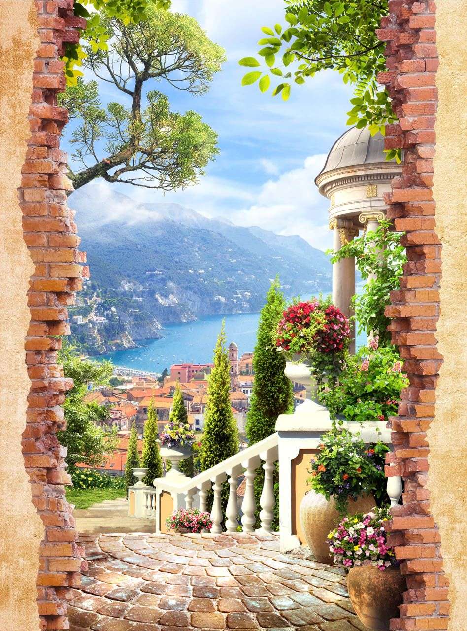 Бесшовные обои на стену: Спуск к морю через пролом. Артикул: 19-0089