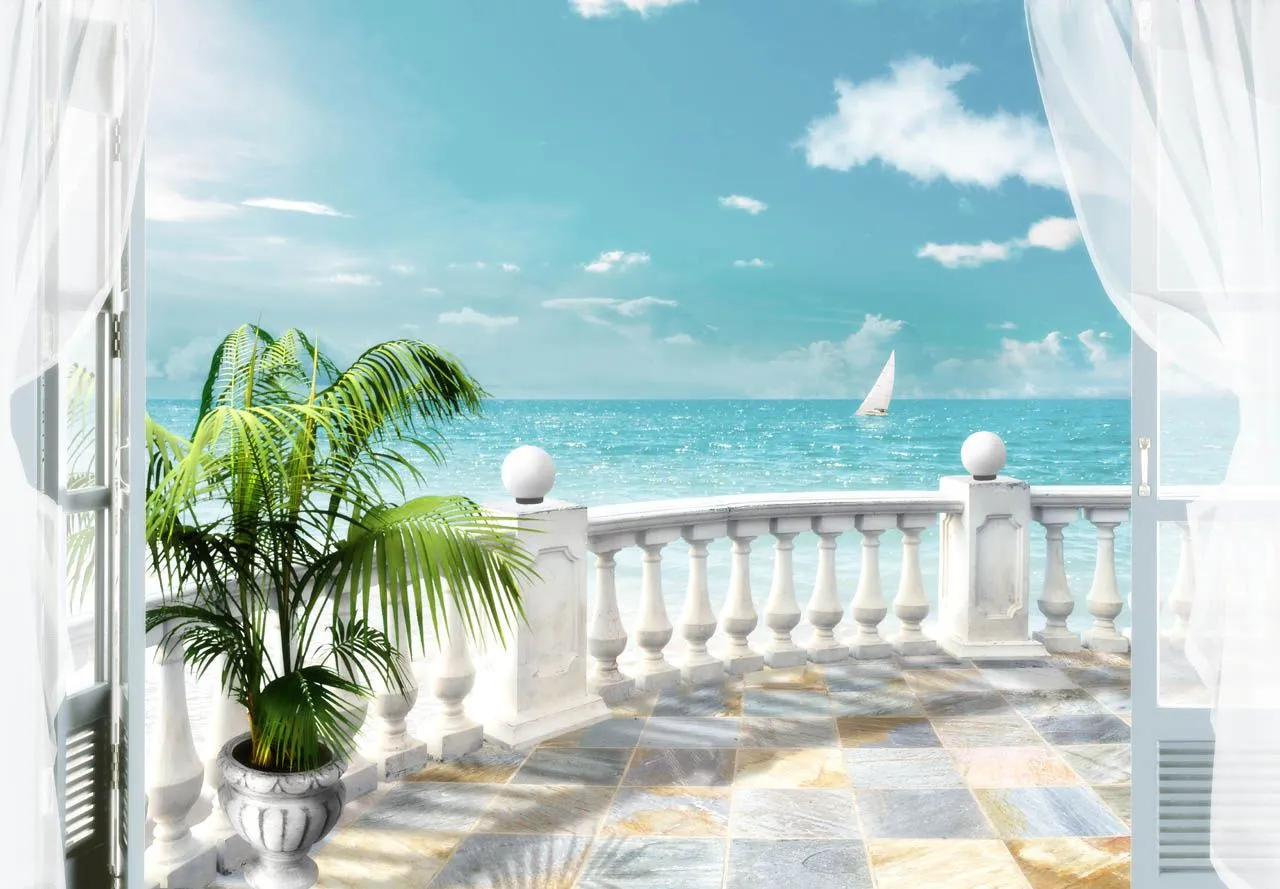 Бесшовные обои на стену: Балкон с видом на океан. Артикул: 19-0114