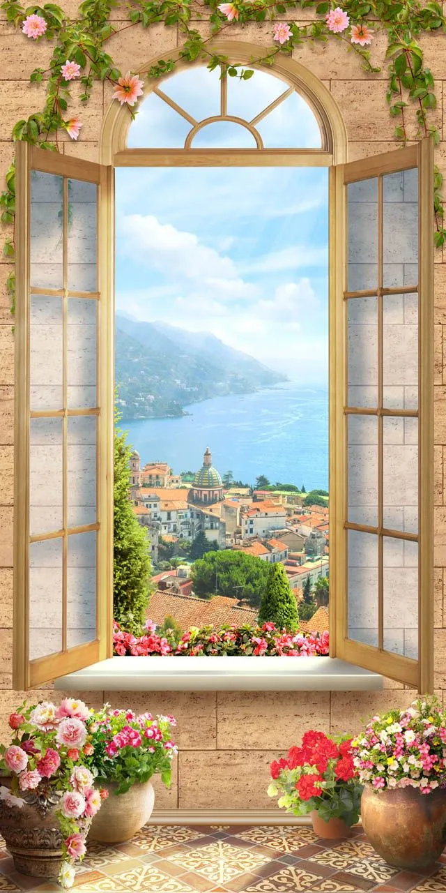 Бесшовные обои на стену: Окно с видом на море. Артикул: 19-0190