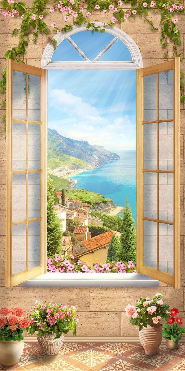 Бесшовные обои на стену: Окно с видом на голубое море. Артикул: 19-0191