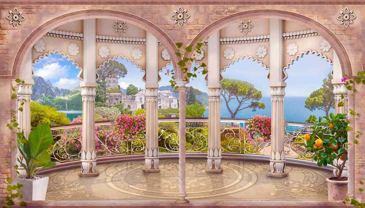 Бесшовные обои на стену: Арка с колоннами на балконе. Артикул: 7-277