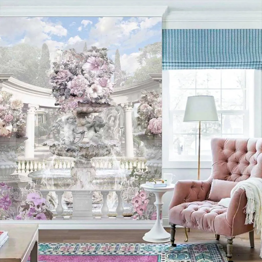Бесшовные обои на стену: Фонтан в парке со статуями. Артикул: 7-365
