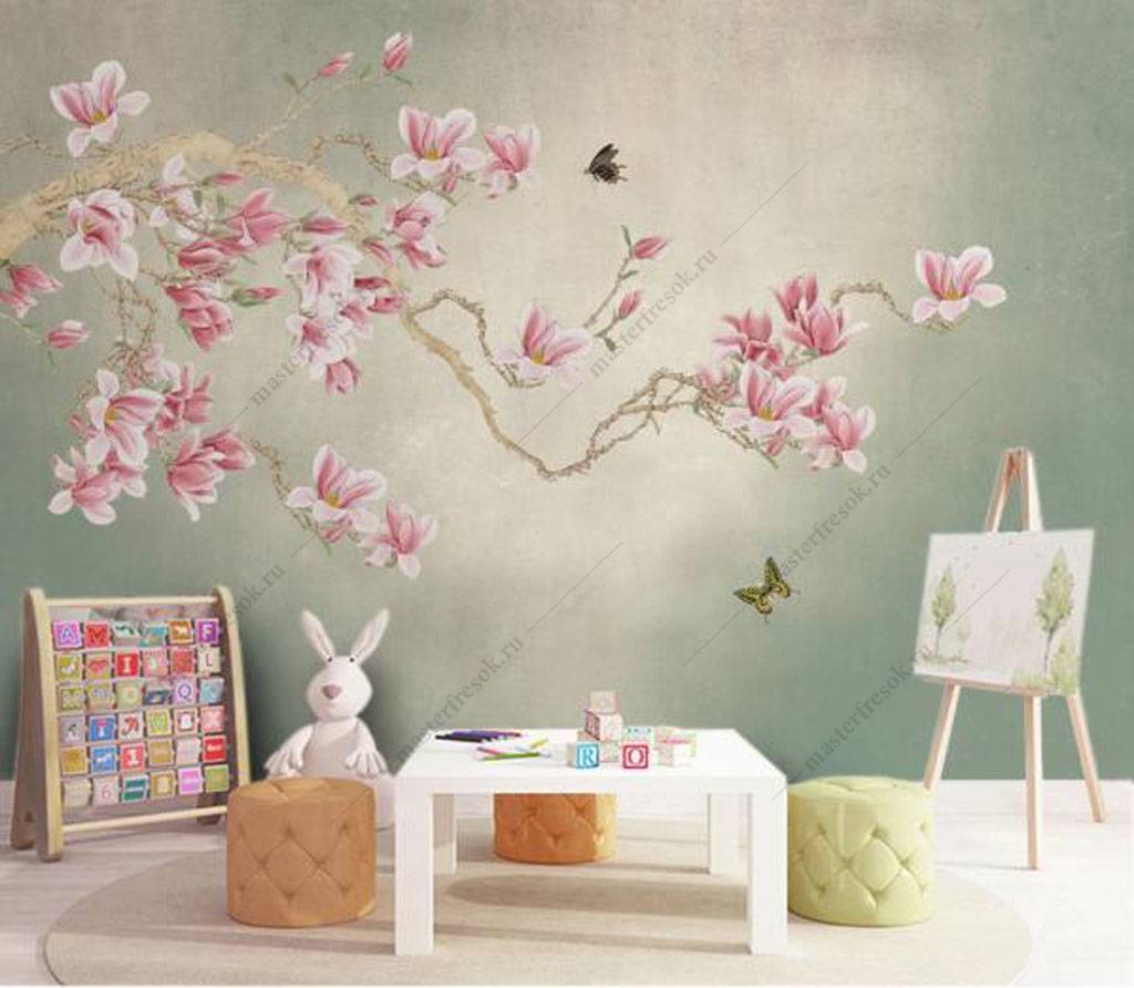 Бесшовные обои на стену: Цветы и бабочки. Артикул: 15-915