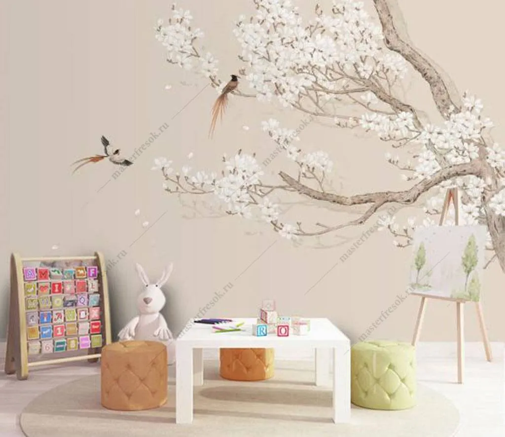 Бесшовные обои на стену: Белая сакура. Артикул: 15-941